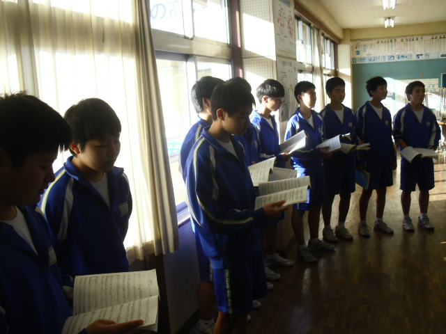 3年生音楽です。卒業式に向けての歌の練習をしていました。