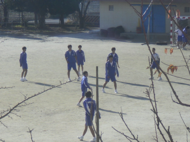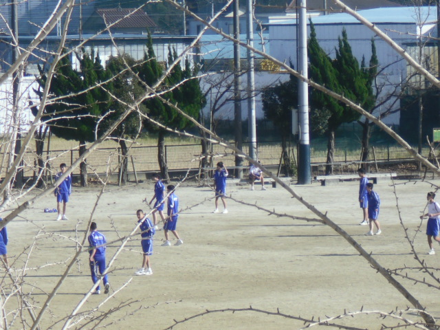 暖かい昼休みです。たくさんの生徒が外に出て、走り回っていました。