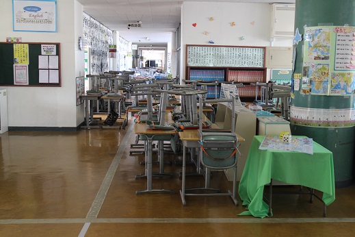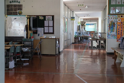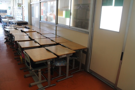 学期末恒例の景色、「ワックスがけ」の状態となりました。