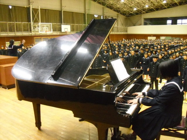 今回から校歌の指揮者・伴奏者が2年生にバトンタッチされました。