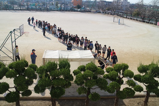 『地震発生後、家庭科室から出火。職員室に伝えた後に遠くの階段から素早く避難』という流れです