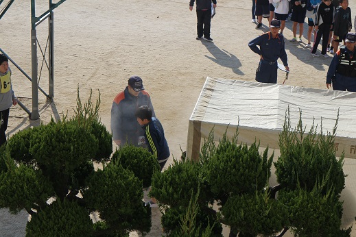 今回は消防士の方にも立ち会っていただいて、訓練の様子をチェックしていただきました。
