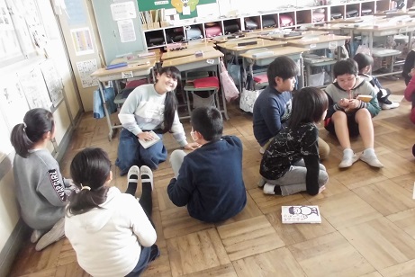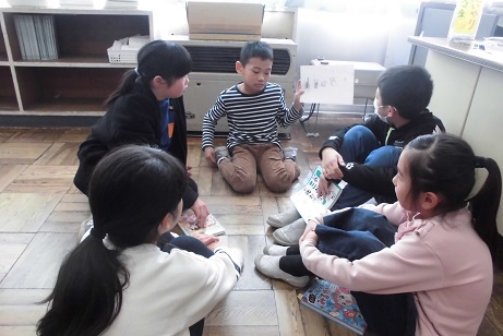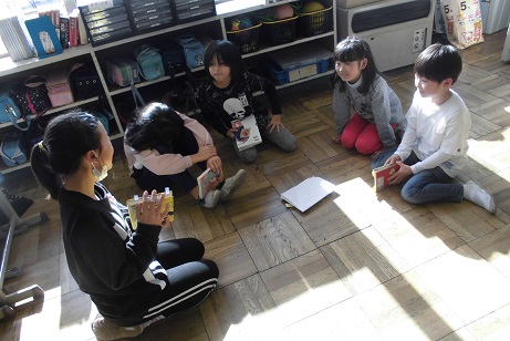 2年生と5年生が合同でビブリオバトルを行っていました。