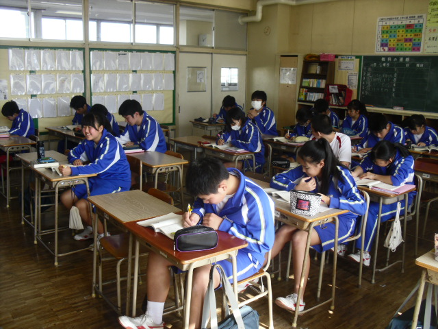 3年生国語です。入試が始まっています。真剣です。