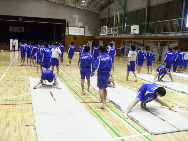 3校時2年生の体育マット運動です。