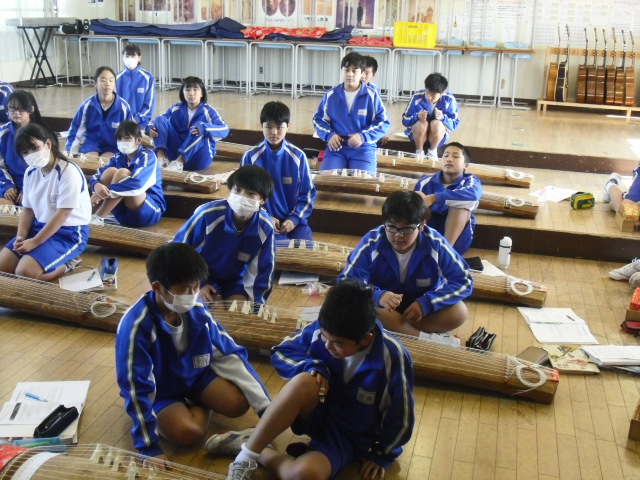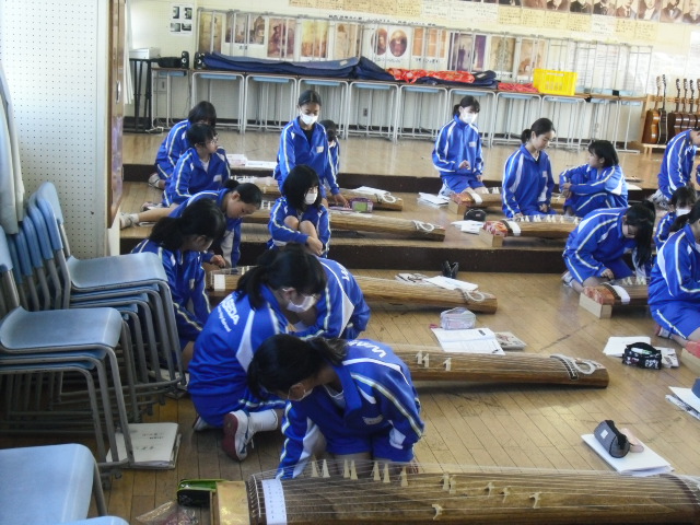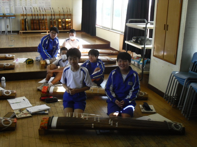 1年生音楽、琴の授業です。
