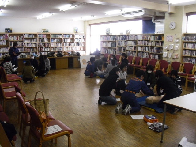 PTA家庭教育学級が行われました。AEDを使用した救急救命の講習を行いました。