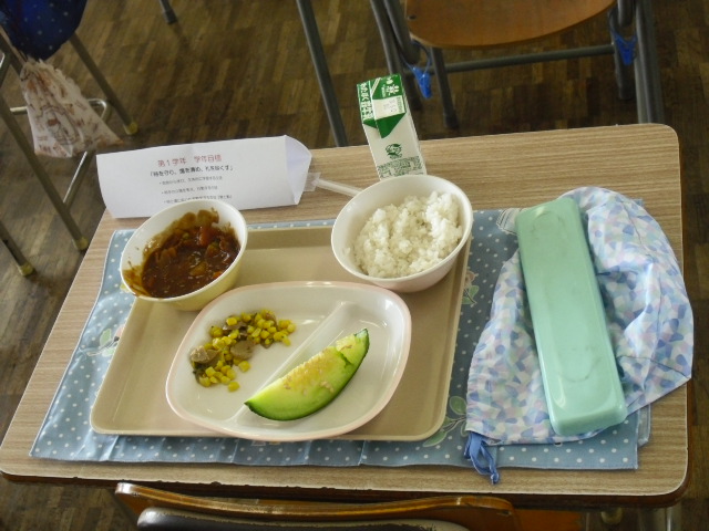 1年生にとっては、中学校で最初の給食になります。