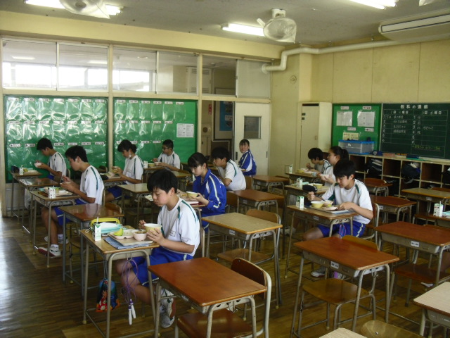 食べる時は、班を作らず、前を向いて静かに食べます。