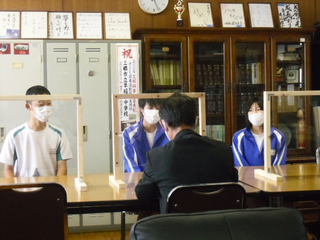 本日より3年生、校長先生による面談が始まりました。昼休みに第一陣の開始です。