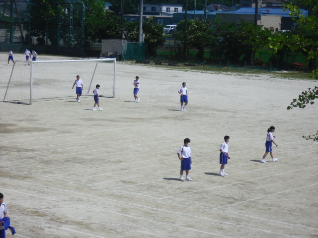 本日昼休みは、大勢の1年生が外に出て、ドッチボールとサッカーをしていました。
