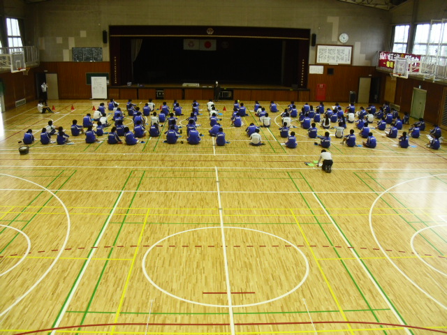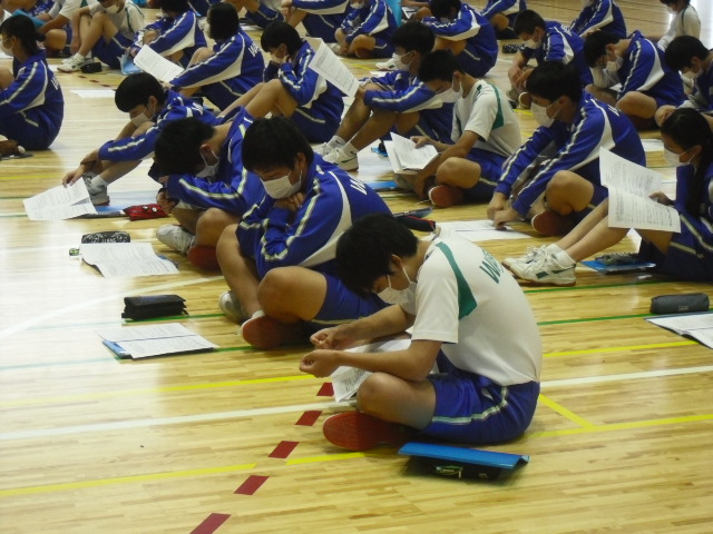 本来であれば、学年生徒全員と保護者が集まって開催されますが、今回は密集を避け、生徒のみで、それも学年を2つに分けて行います。もう1グループは月曜日に行います。