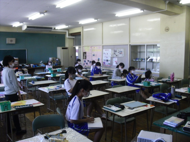 吹奏楽部では、全員マスク着用してのミーティングです。