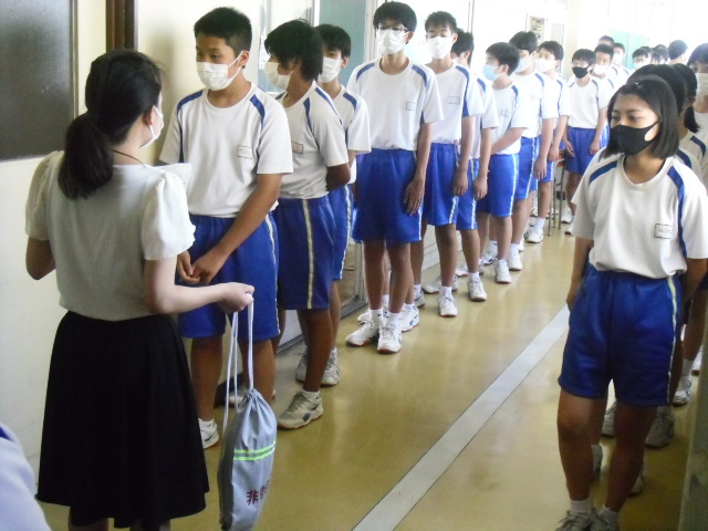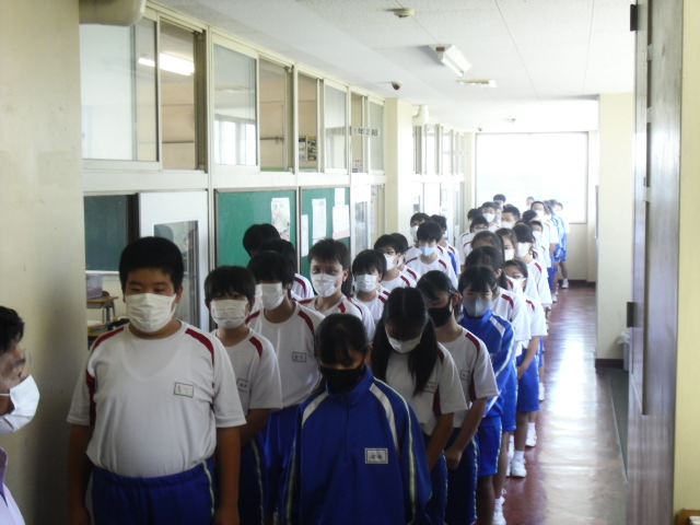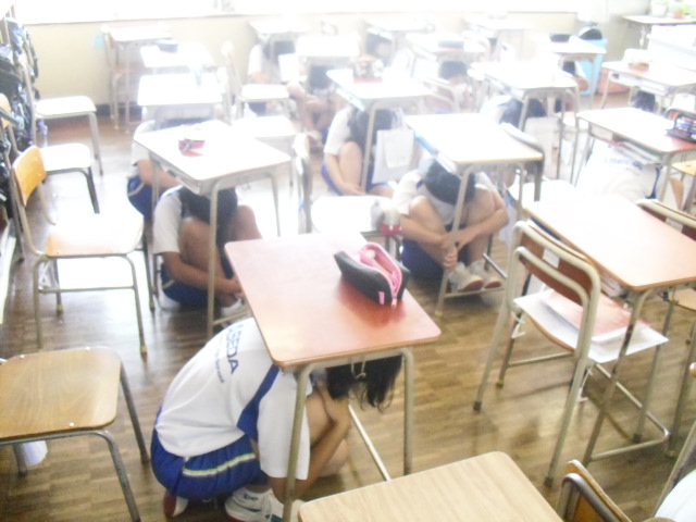 本日、帰りの会のときに避難訓練を行いました。