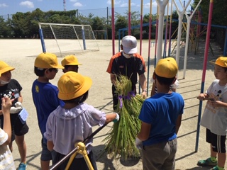 今日は5年生が稲刈りをしました。