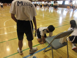 本来は1学期に実施するテストですが、臨時休業による生徒の体力低下を考慮し、今日から始まりました。昭和39年(1964年)からスポーツテストとして実施され、その後平成11年(1999年)にテスト項目が見直され、新体力テストとして行われています。毎年、「握力、上体起こし、長座体前屈、反復横跳び、持久走、20mシャトルラン、50m走、立ち幅跳び、ハンドボール投げ」の9項目について調査します。昨年度との比較もできる調査、体力アップを目指して真剣に取り組んでいる姿は、南中生のよさを感じる一時でした。