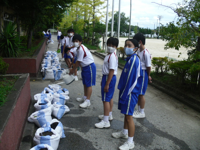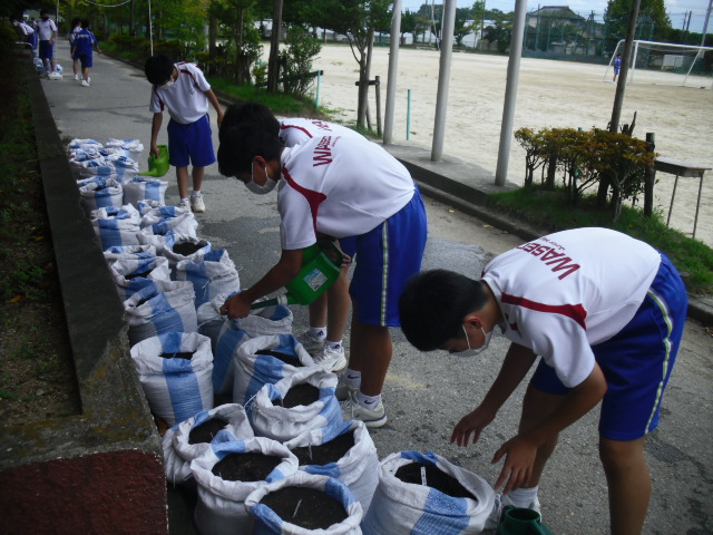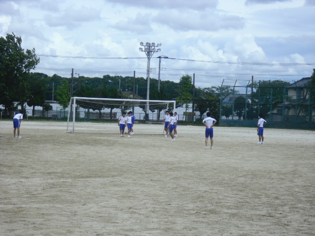 昼休みです。そんなに暑くはありませんでしたが、いつもより外に出ている生徒が少なかったです。技術で栽培しているダイコンの水やりをしたり、サッカー・バレーボールをしたりしていました。