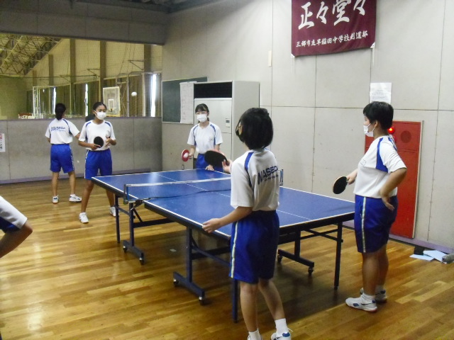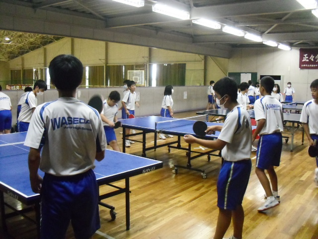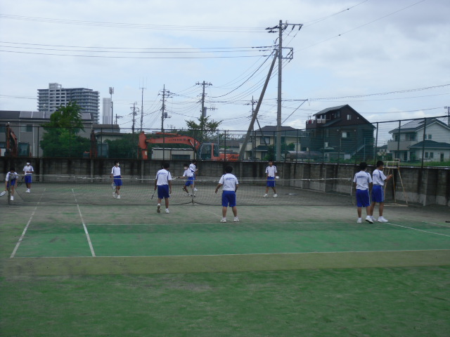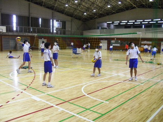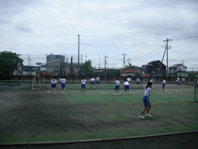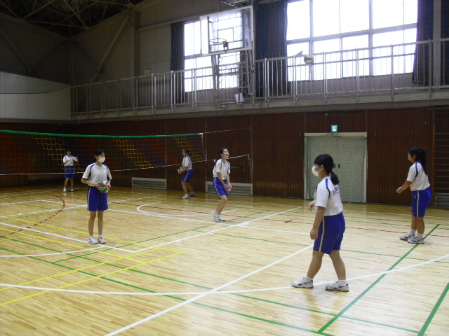 外でテニス、体育館ではバレーボールと卓球が行われていました。