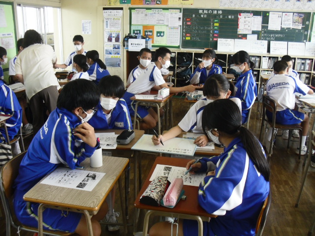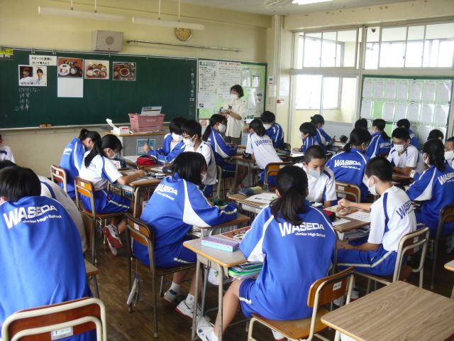 本日2年生は、全クラスにおいて、栄養教諭を講師としてお招きし「食に関する学習」を行いました。