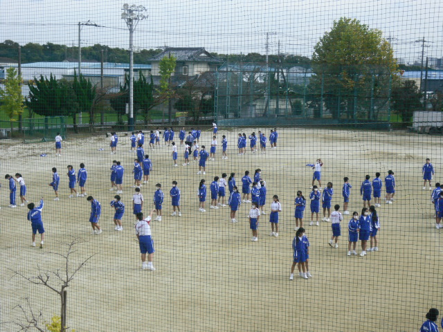 本日、昼休みの校庭です。それぞれ思い思いに過ごしています。1年生は、大繩の練習をしていました。