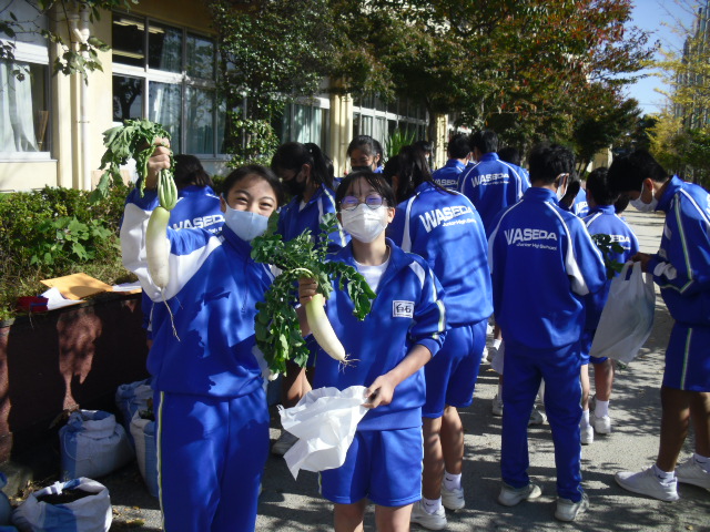 技術科の授業で栽培していた大根を本日収穫しました。毎日の水やりなどの成果で立派な大根が収穫できたようです。