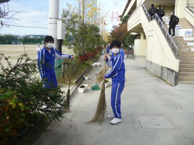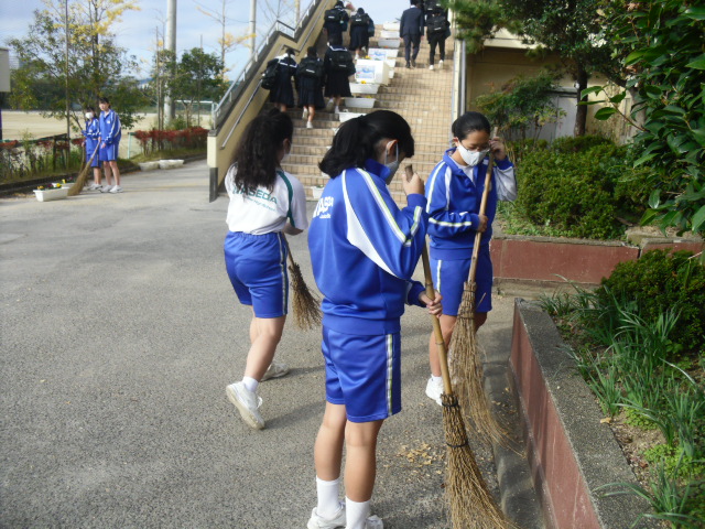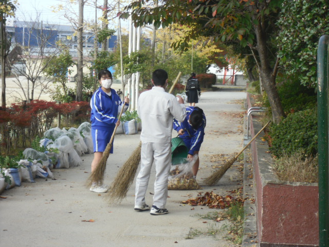 本日の「落ち葉掃きボランティア」です。毎日落ち葉があります。ボランティアのみなさん、よろしくお願いします。