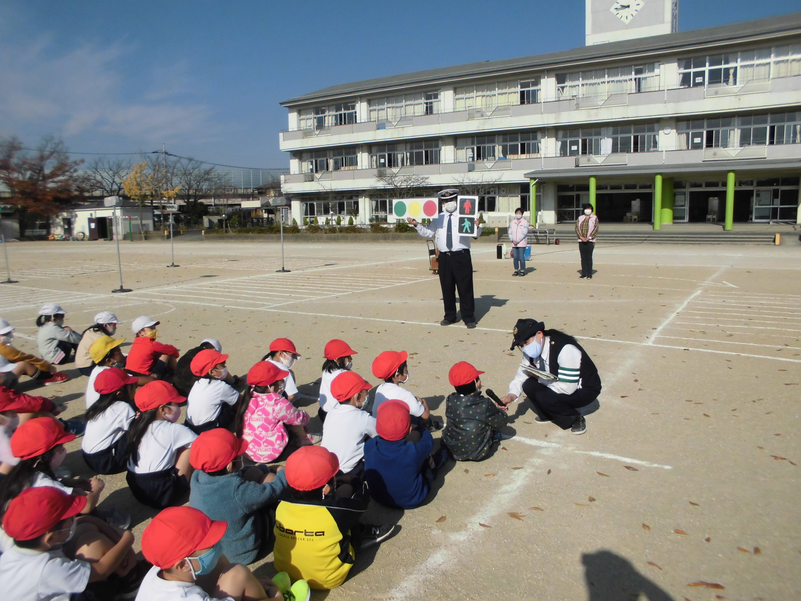 三郷市役所生活安全課を招いての交通安全教室。安全な横断歩道の歩き方を確認しました。