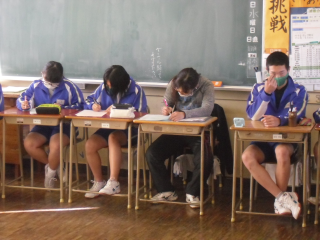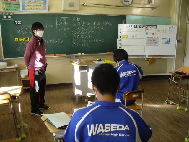 2年生は学級活動です。クラスメイトの良かった点を挙げ合っていました。