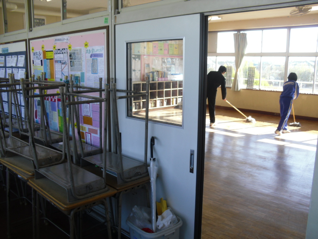 教室ワックスがけ