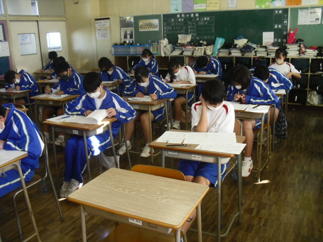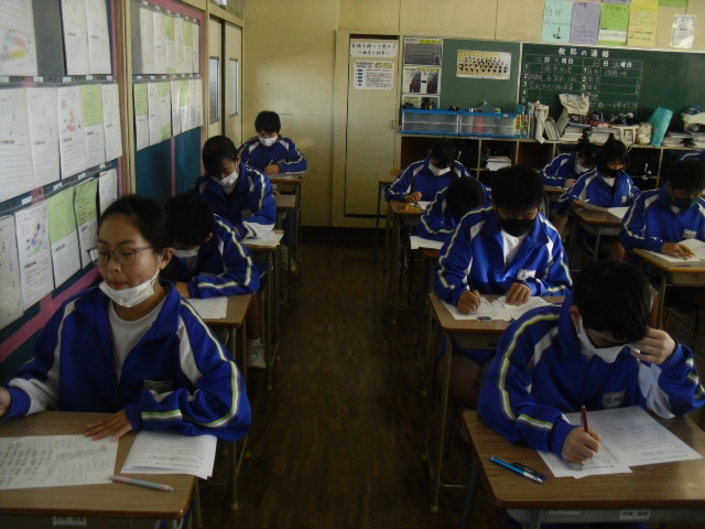 本日より、給食が始まり通常日課になります。1校時の様子です。