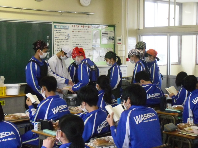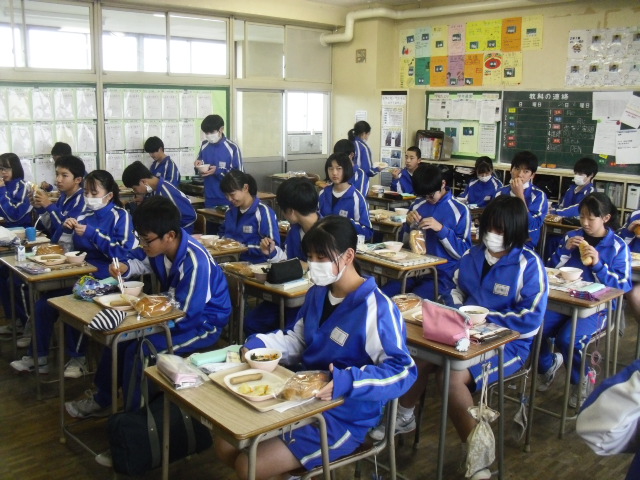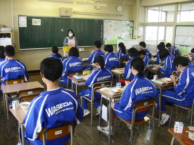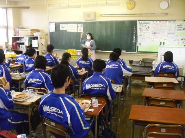 昼食時に2年生のクラスで栄養教諭さんによる食育指導が行われました。