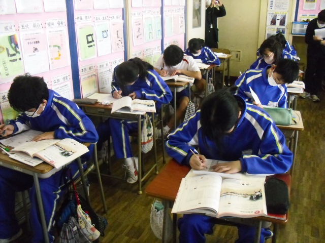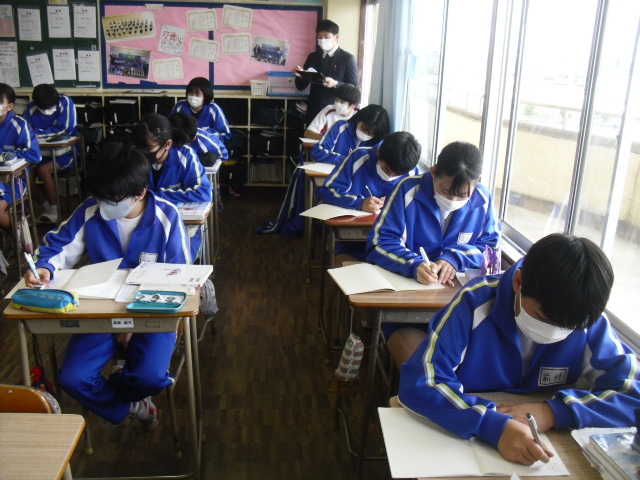 本日5校時、研究授業が行われました。データ分析から始まり、代表値(平均値、中央値、最頻値)を活用して、大縄跳びは2列が良いか、3列が良いかという内容でした。