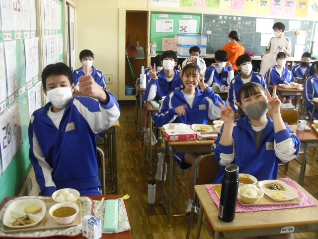 3年生は本日で給食終了となります。ほとんどの人が給食は最後となるでしょう。メニューはカレーでした。しっかり味わっていただきました。