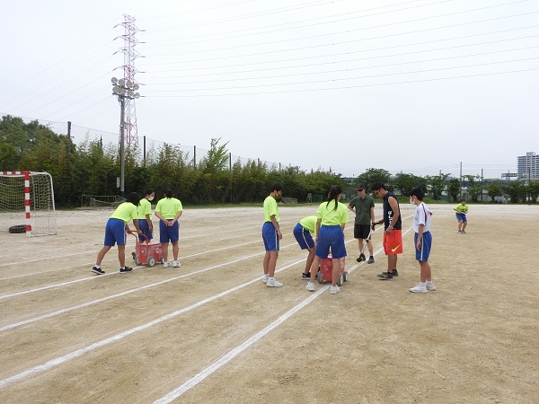 校庭では、陸上部が体育祭学年練習のためのライン引きをしてくれていました。