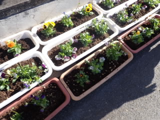 色とりどりのパンジーやビオラを植えていただいたので、正門から昇降口までの道が明るくなりました。