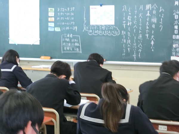 2学期の期末テスト(1日目)