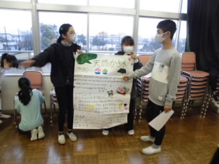 グループに分かれて、埼玉県のよさを伝えるため、上手に画用紙や模造紙にまとめていました。