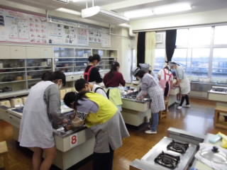 5年1組は、ごはんを作りました。片付けも協力して頑張っていました。おいしくできたようです。
