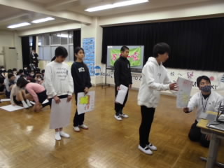 初めに広野小の6年生が、鶴ヶ城や野口英世、赤べこや裏磐梯などについて発表してくれました。