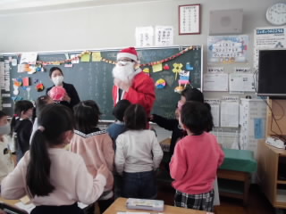 今年も瑞木小にサンタクロースが現れたようです。トナカイも近くにいました。