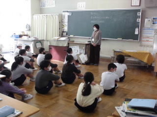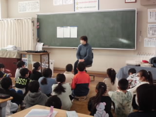 今日から朝の読書タイムで「絵本の会」の方々による読み聞かせが始まりました。