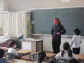 2年生の教室にオニが現れたようで、子供たちは大喜びでした。