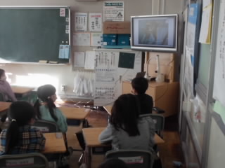 読書タイムの時間に、児童文学作家の今西乃子様から提供していただいた、デジタル紙芝居「ゆれるシッポの子犬・きらら」を鑑賞しました。