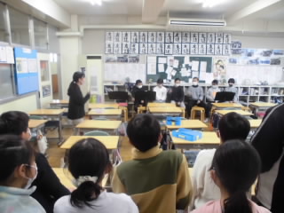 今週の水曜日に不審者が侵入したことを想定した避難訓練がありました。各教室ではバリケードを作りました。