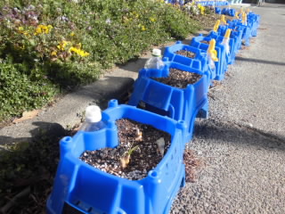 2年生が植えたクロッカスも、春の到来を待ちわびて芽が出てきたようです。