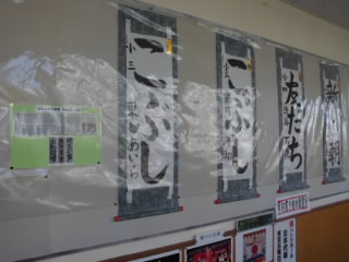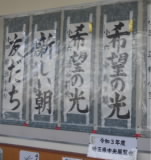 今年度、埼玉県中央展覧会で賞を獲得した書き初めの4作品や、市内で優秀な成績を収めた書き初めの作品を掲示しています。