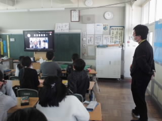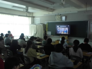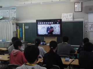 今日は運営委員の5年生がTeamsを使ってオンラインで生放送をしながら、各学年の発表映像を教室で視聴しました。