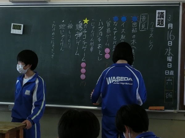 学級会で「みんなが楽しめるレクを考えよう」(1年生)