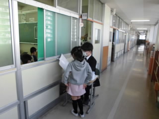 教室や廊下などで、担任から言葉をかけられて「あゆみ」が配付されました。