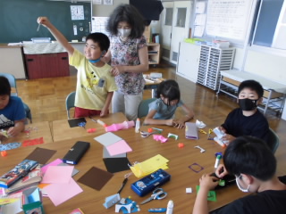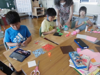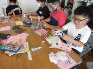 七夕にむけて、短冊づくりをしました。一人一人願いや飾りを一生懸命作っていました。